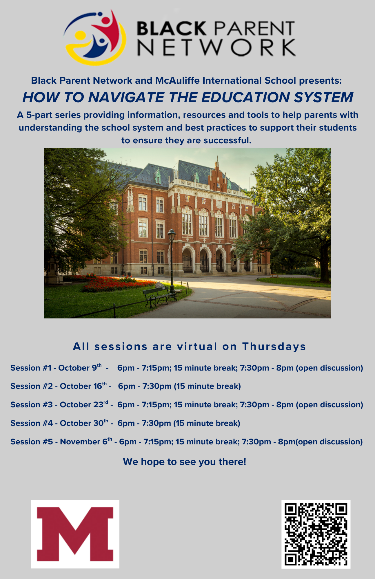 Black Parent Network and McAuliffe International School Presents: How to Navigate the Education System