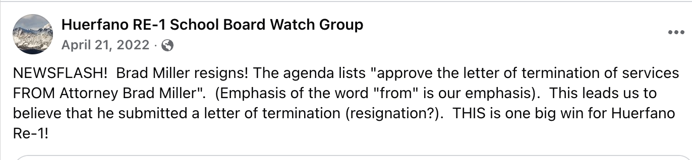 A timeline of school board problems involving Attorney Brad Miller https://coloradopubliceducationwatch.wordpress.com/the-miller-witt-files/